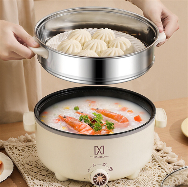 Nồi lẩu điện 2 tầng 28cm nút cơ TRẮNG